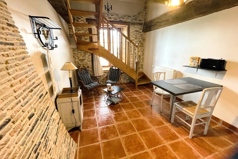 Au premier étage avec accès indépendant par un escalier extérieur, l’appartement se présente en duplex comprenant un espace cuisine et salon, une salle d’eau avec WC séparés et une chambre en mezzanine avec un lit de 160X200.